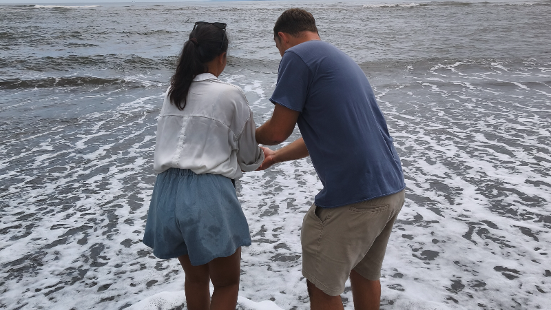 After learning about the process, we moved on to our main goal of releasing the baby turtles into the ocean. We decided to release 50 baby turtles because it represents the number of couples we have welcomed this year. Each turtle symbolizes one couple we had the privilege to plan and support throughout their honeymoon journey with us, Balihoneymoon.com. Naturally, baby turtles return to the ocean within 24 hours after hatching, following their instinct to reach the sea. However, keeping them for a few days or weeks helps protect them from predators, weather conditions, and other risks, giving them a better chance of survival once released. Releasing 50 baby turtles became a meaningful way to close our year, as it reflects our commitment to giving back to the local community and supporting initiatives that protect Bali’s natural environment. By contributing to local sea turtle conservation, we support local partners and help preserve the ecosystem that sustains coastal communities. This initiative reflects our ongoing commitment to social responsibility, making sure that our work creates a positive impact not only for our clients but also for the people and the environment.