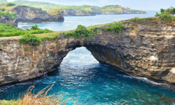 Like Bali, Nusa Penida has tranquil beaches in the northern part of the island and a wild ocean with large waves and spectacular rock formations in the southern part. Most of the hotels are located on the quiet north side of the island, while the most popular tourist attractions are concentrated in the south and southeast.
