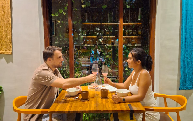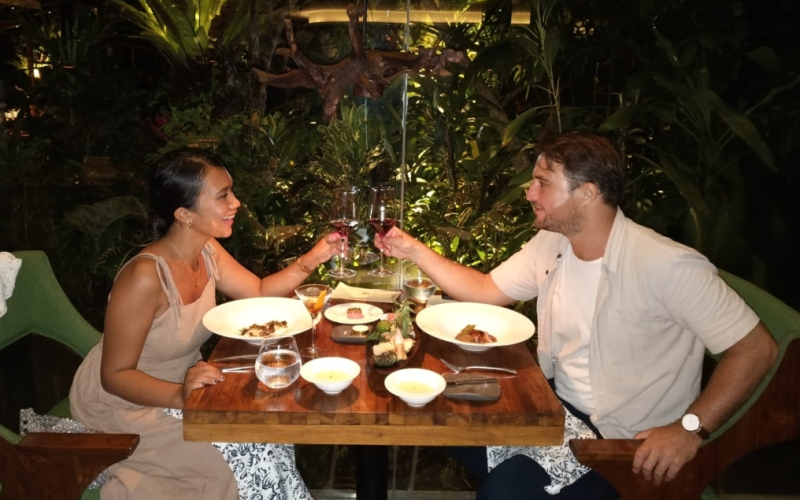 Ubud, BaliAfter countless romantic dinners in Bali, we were craving something fresh and exciting. That’s when we discovered Seven Paintings Ubud, an artistic dining experience unlike any other. We arrived early and were greeted by a breathtaking jungle sunset view—an enchanting start to the evening.