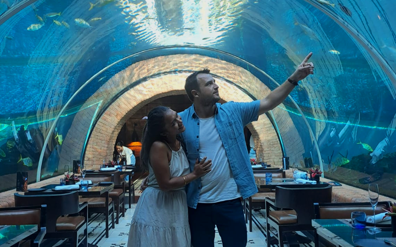 We believe Koral is a perfect option for honeymooners that stay in Nusa Dua or Uluwatu, especially if you can secure one of the six tables under the tunnel (book well in advance!). Tell the restaurant you are on a honeymoon, a diver might swim by to wish you and your partner a happy honeymoon from the water. Koral can accomodate other surprises too, like proposals or birthday congratulations.