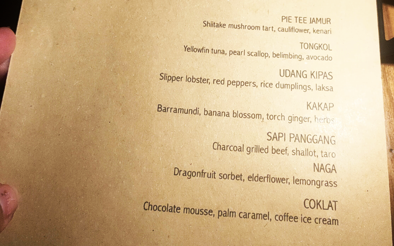 Seminyak, 5-10m drive from tourist areaSangsaka is a modern Indonesian restaurant in Seminyak offering one of the best tasting menus we have had in Bali, as well as à la carte options. Don't get confused with their website, it does not list the tasting menu but it does exist! We have added the 7-course menu from when we visited below, but the latest online reviews indicate that the menu is now 8 courses.