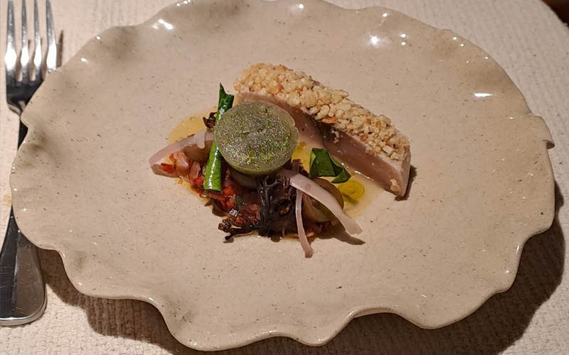 Unique is the detailed attention to the traceability of each ingredient, all originating from Bali. The friendly staff is keen to explain more about the inspiration, origin and background of each dish. Next to the restaurant you'll find a large garden where local vegetables, herbs and spices are grown. Local seafood is an important ingredient many of the "moments". Many dishes have been inspired by local Indonesian and Balinese flavours elevated to new levels. Most tourists miss out on Sambal Dabu Dabu or Urap because it is simply too spicy - but Syrco's adaptation makes these flavours accessible without compromising on taste.