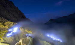 The Iljen vocanic crater is famous for a blue fire that lights for a few hours in the middle of the night, followed by a spectacular sunrise overlooking the Java Sea and Bali a bit later. This tour will pick you up from your Bali hotel in the afternoon. You will arrive in the early evening and will be offered a room to sleep for a couple of hours (you will need that rest!). In the midst of the night you will start your ascent up to the crater's edge (this took us around 1.5 hours). If you want, you can then ascent into the crater (30 mins down and 30 mins up again) to get closer to the blue fire. This requires you wearing a gas mask that is provided by your tourguide. Later the sun will rise, revealing a spectacular landscape that was not visible during your initial ascent. After walking down again (way faster than the way up) you will enjoy a healthy Javanese breakfast before returning to Bali.