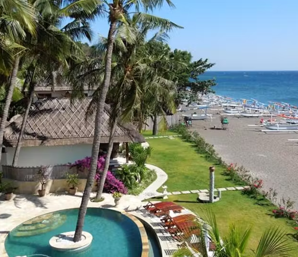 - Day 6: After wrapping up your certification, it is time to get a ferry back to Padangbai in Bali, from where you can take a 1.5-hour taxi to Amed. Ask your driver to make a one-hour stop at the Balinese Hindu water temple complex of Tirta Gangga, as its beautiful and on the way! Maybe arrange this taxi in advance with your hotel, as the taxi’s in the port of Padangbai are notoriously expensive. In Amed, we believe the Santai Hotel is a great option for divers (and the both of you are divers by now!), as the ocean with plenty to explore underwater is right in front of the hotel.