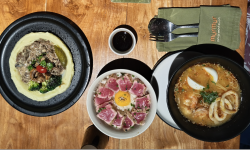 Casual diningShortcut CangguRead More ↓If you happen to be in Shortcut Canggu (which you likely will if you decide to go to Canggu), hop into Murmur Restaurant. The 2-storey restaurant offers a bit of everything: Slavik, Western, and Asian menus. We ordered the Authentic Tuna Poke Bowl, Beef Stroganoff, Tom Yum Soup, and Apple Pie. I was surprised by the quality of the food. The wide variety of food is very delicious! It is presented immaculately yet delicious in flavour.