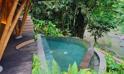 5 starAffordable luxuryNature viewsJungle 20 mins from CangguLocated in a secluded in a jungle river valley, but still only 20 minutes drive from Canggu. That is the promise of the 5-star boutique Suenyo Eco Retreat. Read our full review, as we were able to stay in one of their 5 spectacular private bamboo "Paviljons" with private pool and bathtub overlooking a jungle river. Our Pavilion featured spectacular bamboo architecture, unobstructed jungle river views, a private infinity pool and riverside bathtub.