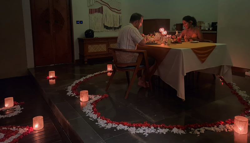 The Aksari resort makes it possible to enjoy a romantic private candle light dinner, either in your own villa, or at the bamboo yoga platform. We opted to have the experience in our room, and enjoyed three courses surrounded by candle lights.