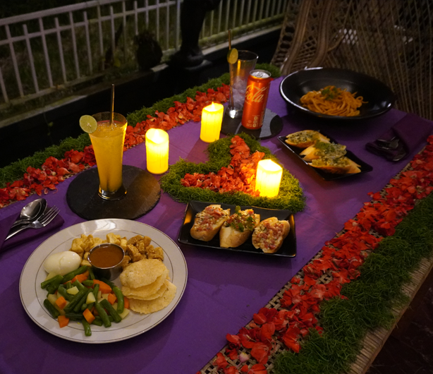 For an especially romantic evening, Capung Asri offers a three-course candlelight dinner. We had the option of having it in our gazebo within our private villa, or in a larger gazebo outside overlooking the rice paddy fields that they have dubbed the Zen Lounge. Our romantic candlelight dinner was beautifully set up in the large gazebo outside. Ascending the steps up into the large gazebo, the trail of candles and flowers were difficult to tear our eyes away from, it felt really special.