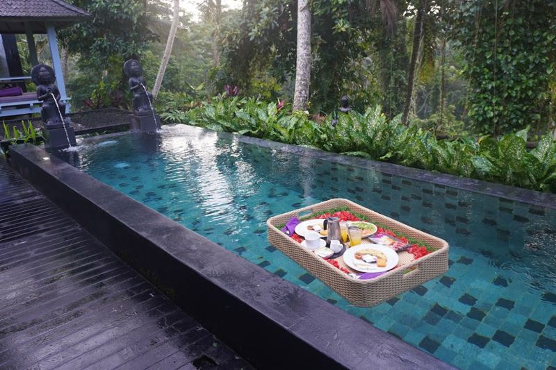 In the morning, the floating breakfast was delivered to us in our infinity pool. Taking a dip with a complete breakfast of fruit, omelets, and juice, while taking in the beautiful nature spread out in front of us was the perfect treat to end our stay.
