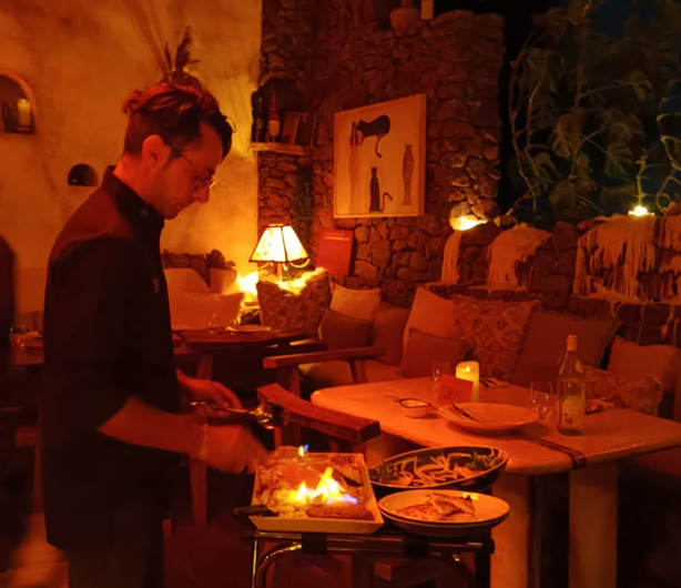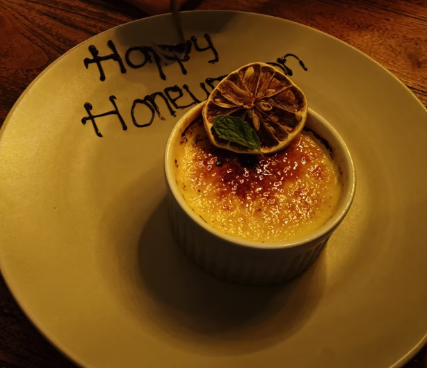 As main, we had the Lobster Linguini and Smoked Seabass. To our surprise, the lobster linguini came with a whole lobster and was a very tasty and filling main. We enjoyed the smoked seabass too, but if both of you want to eat grilled fish we might have another recommendation: We noticed our neighbouring table ordering a massive salt-crusted red snapper that was spectacularly prepared by the head-chef using flames right in front of their table. A great experience if you and your partner are willing to share a main dish.
