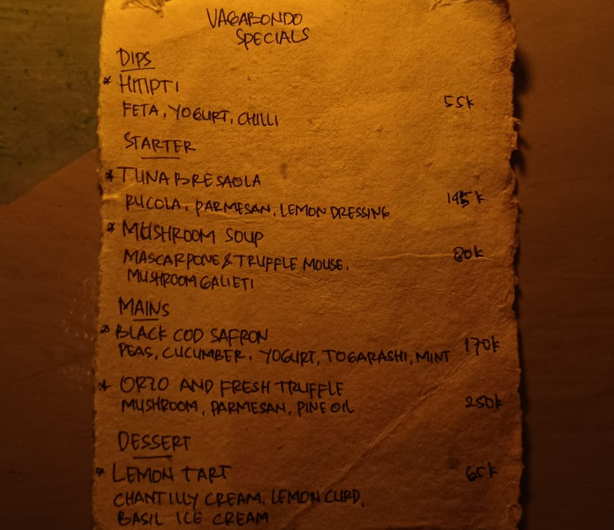 We’ve driven past Vagabondo Restaurant in Seminyak’s Petitenget Street a few times, and were always intrigued by its slogan: “Not a Greek Restaurant”. When we also noticed the place has many raving reviews on Google Maps, we figured it was time to give it a try.