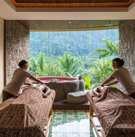 - Its your first full day in Bali, lets take it easy! Take some more time to enjoy the resort, you won't have to leave at all! In the afternoon we have arranged a Couple Massage in the Kapha Spa and a 3-Course Dinner with candles and flower decorations. A bottle of wine is included.
