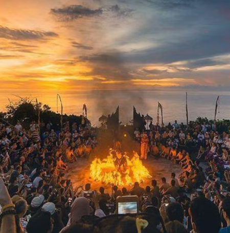 - Your driver will take you to Uluwatu Temple on the cliffs. This is where you will witness a spectacular traditional Balinese Kecak Fire Dance Performance while the sun sets in the distance. Watch out for the monkeys roaming around the Temple Complex!