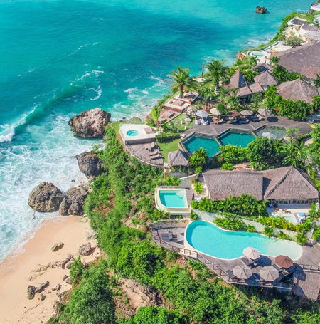 - The resort is located on a cliff facing west, overlooking the Indian Ocean, allowing you to watch the sunset. Don't miss out on the small but spectacular white-sand beach with wild waves, which can be reached by following the stairs down from the cliff. While technically this beach is not fully private, when we visited there was no one else there.