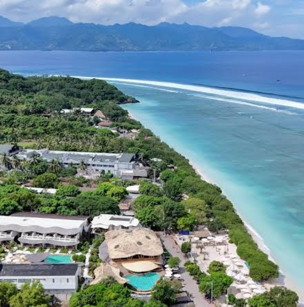 - The hotel has its own beachfront bar that gets lively during sunset. On clear days, the sunset over the Lombok strait is spectacular, you may even be able to see Bali's volcanoes in the distance.