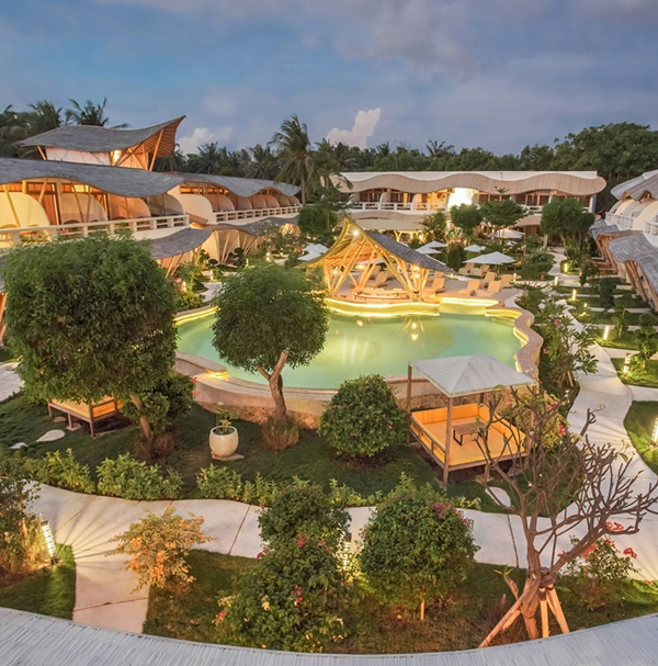 - You'll stay in a comfortable King Bed Pearl Art Suite. The room is spacious (45sqm/480sqf), and has a view over the resort. If you're lucky you may even have ocean views from your balcony! A great a-la-carte breakfast at the elevated Cloud9 Bamboo Restaurant overlooking the ocean is included.