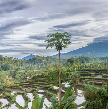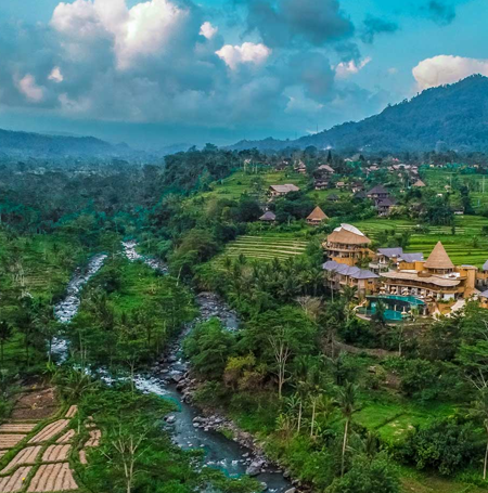 You will stay 3 nights in a Luxury Tent at the very highly rated ⭐⭐⭐⭐⭐ 5-star Wapa di Ume resort in the Sidemen region of East Bali. Check our Sidemen Honeymoon Guide for more information about the beautiful rural region of Sidemen.