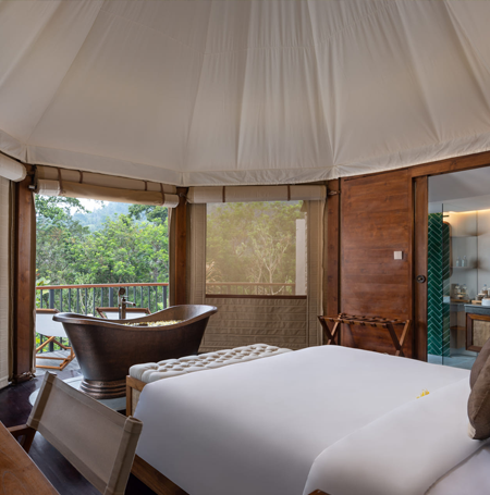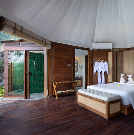 - You'll stay in a Luxury Glamping Tent. Don't worry, this is not camping as you know it: your luxury tent features a comfortable bathroom, king bed and air conditioning!