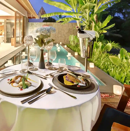 ❤️ Promo! Book your Honeymoon Package of 7 nights or more before the end of the month, and we'll include a free 5 course dinner at the highly rated Arcadia Restaurant in Ubud (4,9/5 ⭐ star rating on Google Maps) including wine, cocktail or non-alcoholic pairing.