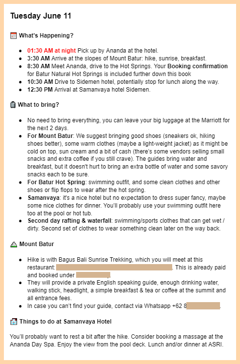 ✔️ You’ll receive a booklet with your itinerary and everything you will need to know from day to day (what to bring and wear, what time to be where, contact details, pre-purchased tickets, etc).