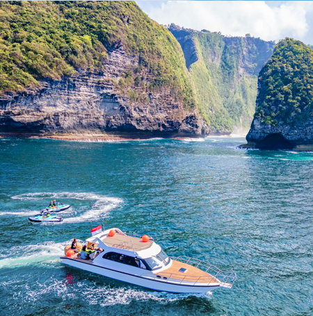 The beautiful island of Nusa Penida is located towards the East of Bali. Its such a gem that we have written an entire article about the island. However the most spectacular way to visit Nusa Penida might be by a luxury yacht! You can book this directly with us through whatsapp. We work with a trusted local operator which provides professionally trained staff to operate the yacht as well as guide you to experience the best snorkeling spots.