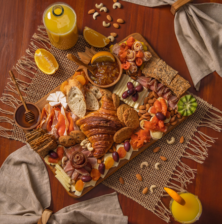 - Food on board (breakfast platter, afternoon snacks)