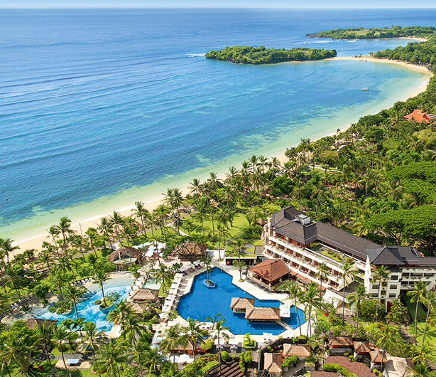 5 starAffordable luxuryBeachfrontAll inclusiveA popular more affordable option in Nusa Dua. One of the few hotels offering all-inclusive service with all meals and drinks included. Beachfront property with a romantic swing and hammock in the water. They have a large lagoon swimming pool that is fun to explore, but if you prefer a private pool, they do have a private villa you can book as well.