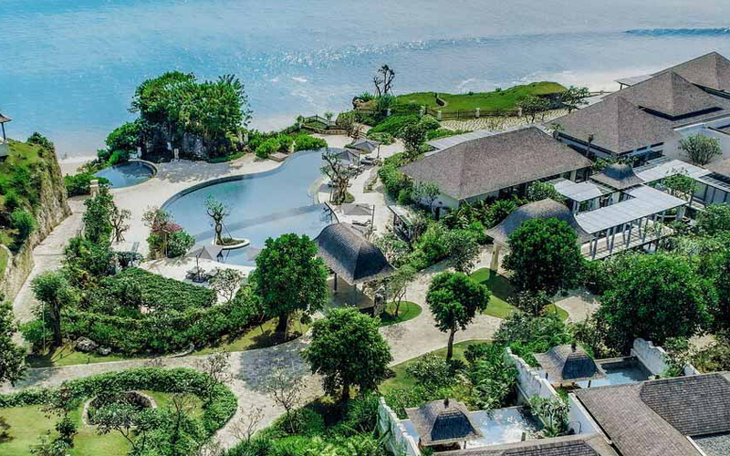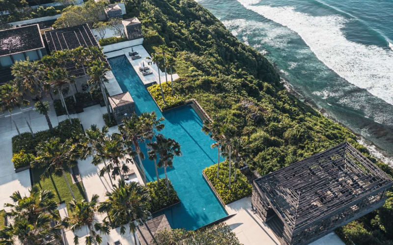 Elevated above the limestone cliffs of Uluwatu, the Alilia villas is a 5-star paradise surrounded by stunning coastal vistas and a breath-taking view of the clear skies and ocean. Managed by the Hyatt hotel group, the luxury services here will be hard to find anywhere else in Bali. You cannot book a room here, all they offer are private villas!