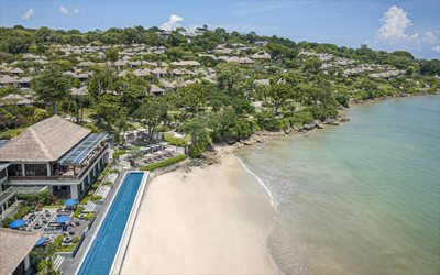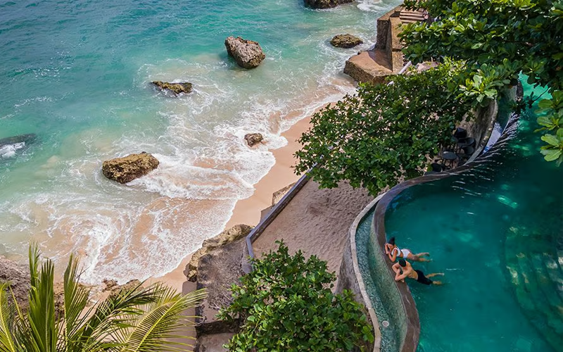 The Ungasan Clifftop Resort arguably is located on Bali's best beach. Hidden between green cliffs, the white sand beach and turquoise-blue waters that you can only find on Bali's souternmost tip are reason alone to stay at Ungasan.