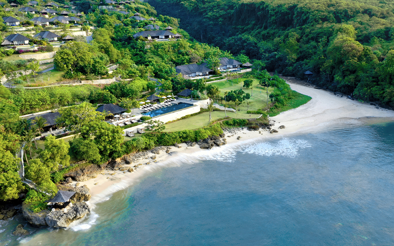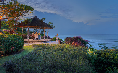Located just south of Jimbaran, the Raffles hotel is easily accessible within 20 minutes from Bali Airport. The cliffs of Uluwatu are 25 minutes away. Luxury villas are tucked away on a hillslide sloping towards the Indian Ocean.