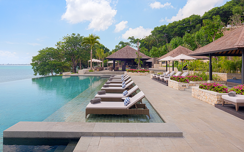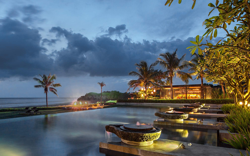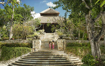 The Jumeirah Bali is located on Dreamland beach, just north of Uluwatu. The imposing main building is inspired by Javanese and Hindu influences. Due to the location of this resort on a beach facing west, it is a great spot to watch the sun setting over the Indian Ocean.