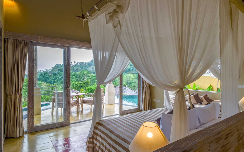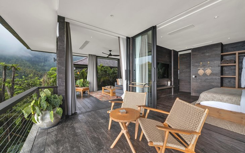 We love this place: Wapa di Ume Sidemen is a five star boutique resort featuring panoramic views, with the majestic Mount Agung, the largest mountain of Bali, in the distance. While in a remote location, the resort offers all amenities you'll likely need: They have a spa, yoga, infinity pool, gym, restaurant and bar. Every room is spacious with a view overlooking the hill and river, but your best bet for a romantic getaway might be the Private Pool Villa. Their breakfast is a treat, offering a wide array of options and delicious drinks. What makes this resort stand out is its cozy atmosphere and limited number of rooms, allowing guests to truly relax and enjoy the beautiful surroundings.