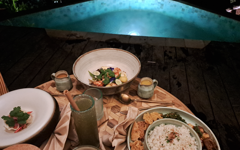 Here, you can easily indulge yourself with Mediterranean-European dining at Kubu Restaurant, vibrant flavors of Balinese and Asian cuisine at Sawah Terrace, and leisurely drinks at The Pool Bar and The Library, all while admiring beautiful Ubud’s green landscapes.