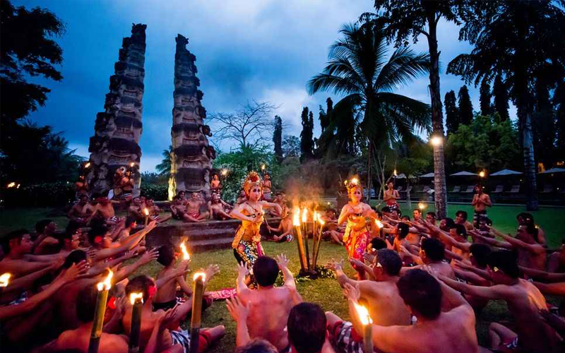 The resort's name, "Kayon," means a connection between nature and sky. It's only a short ten-minute drive from Ubud center, and it's designed to fit in with the beautiful nature around it. Look for the romantic stone wall with pictures depicting the Ramayana story (a Balinese and Hindu saga).